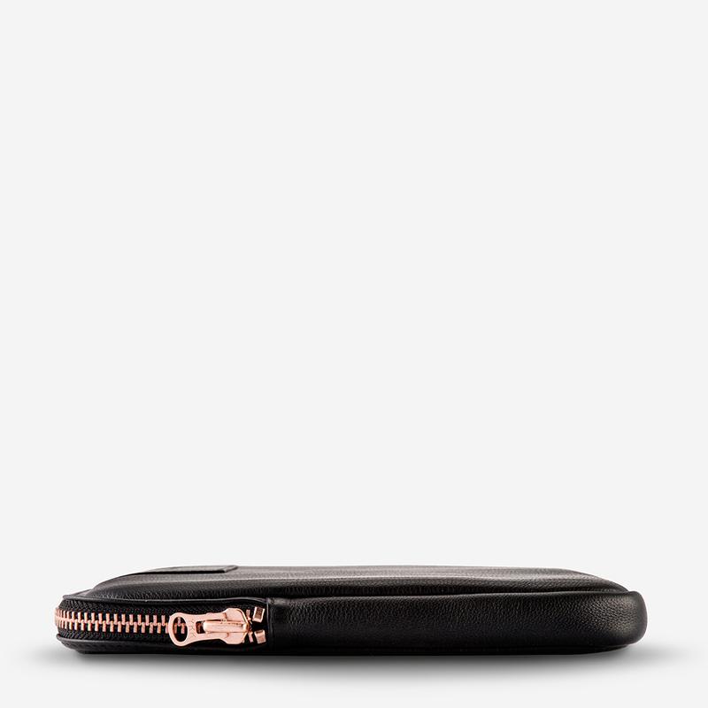 Products DescriptionFor when it's time to make tracks.? The 'Before I Leave' laptop case is handmade of premium shrunken pebble leather and solid YKK hardware.? Whilst the thick internal body padding and microfibre lining provide additional shock absorption.