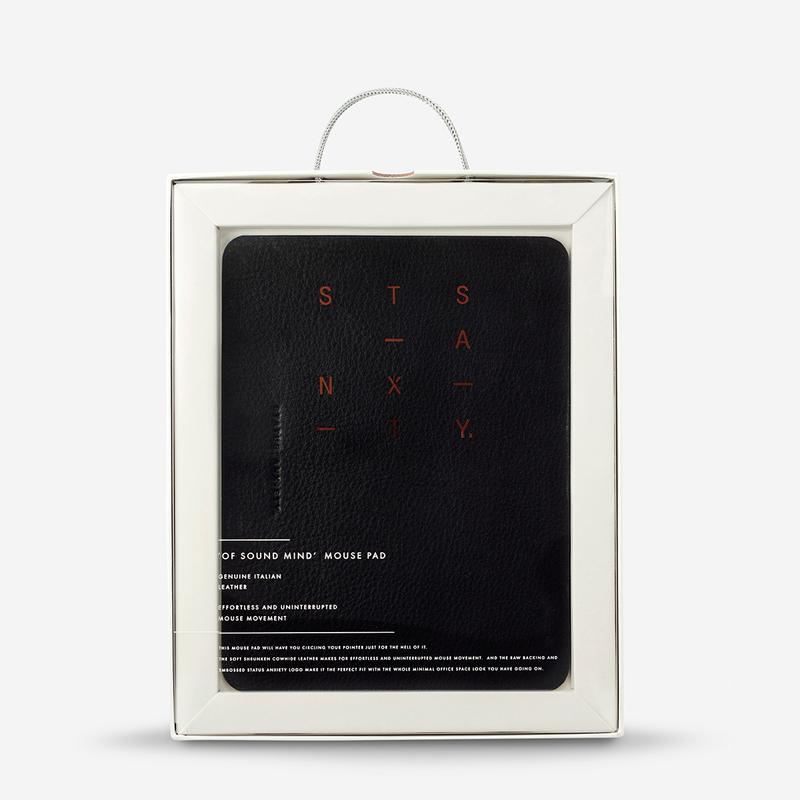 The 'Of Sound Mind' mouse pad will have you circling your pointer just for the hell of it.? The soft shrunken cowhide leather makes for effortless uninterrupted mouse movement.? Whilst the suede leather backing provides the grip you'll need to avoid following your mouse pad around your desk (simple stuff really).